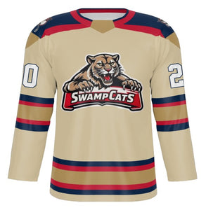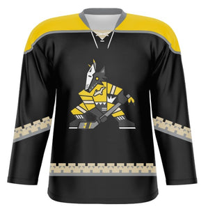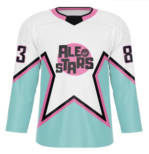 Dye sublimination, commonly known as sublimination - is the process of printing an image and using heat to transfer it to the substrate (such as a hockey jersey). This is a common method of producing jerseys for many pro European teams, and special edition jerseys for some pro teams in North America.