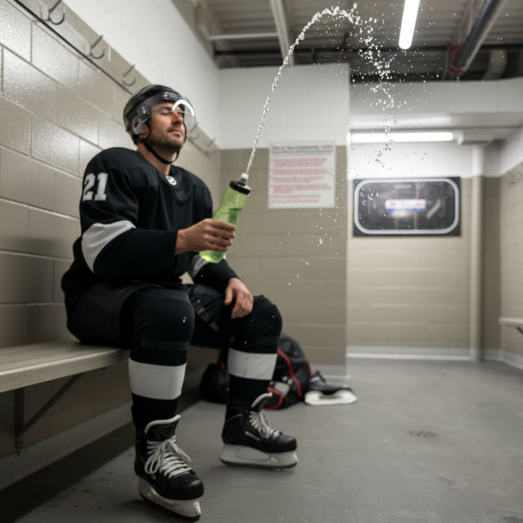 The Conway+Banks Jetfuel Squirt Bottle is a translucent green water companion designed for athletes of all ages. Lightweight and durable, it’s the perfect partner for hockey and workouts.